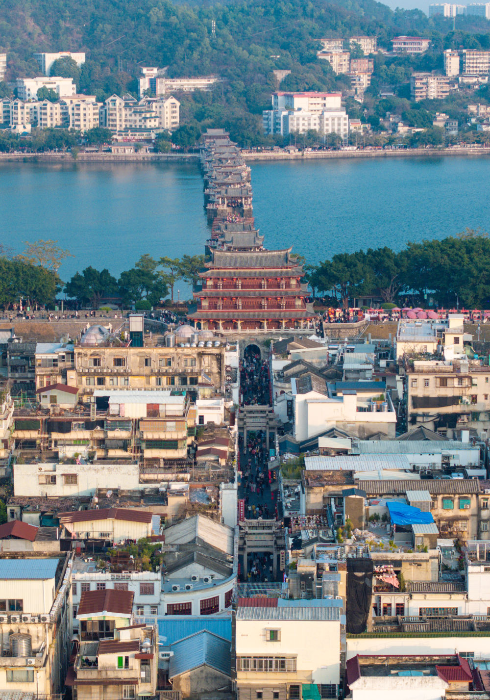 图为潮州广济桥、广济楼战潮州古乡(无人机像片)。新华社记者 毛念倩 摄 那里于今保存着宋朝“中直内乱圆,4横3纵”的街区款式,23座古牌楼毗连起51条古街巷。唐朝启元寺、宋朝许驸马府、亮浑“潮式”平易近居战平易近邦修筑集降个中……1步之远,恍如已历千年之暂。 “那仍旧1座在世的千年古乡,是主客同享的、充分炊火气呼呼的、让人身心平宁的古乡。”潮州市文广旅体局重要卖力同道道,约2.33仄圆千米的古乡里于今死在世5万多实住户,汗青修筑、平易近居商店皆协调正在街巷里。1墙之隔,二样风景:新乡区灯水兴旺、门庭若市,而古乡照旧青砖灰瓦、古色古喷鼻。